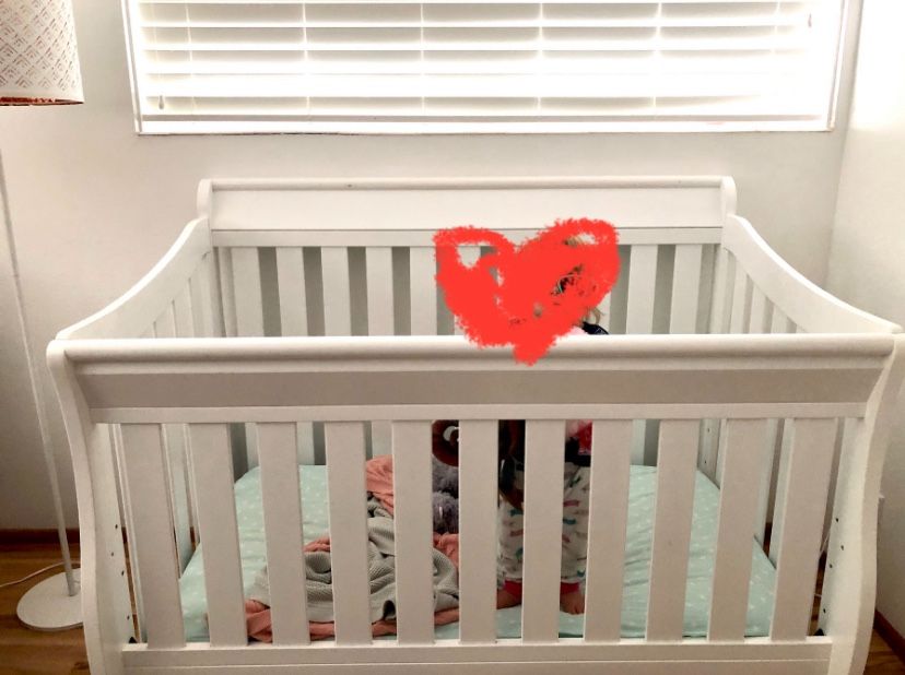 Selling our sturdy crib! Originally from Pottery Barn. It’s only been used in our house and my sister’s - both smoke free and pet free. Standard size. Dimensions available upon request. You’ll need a new mattress. Some minor scuffs and scratches.
