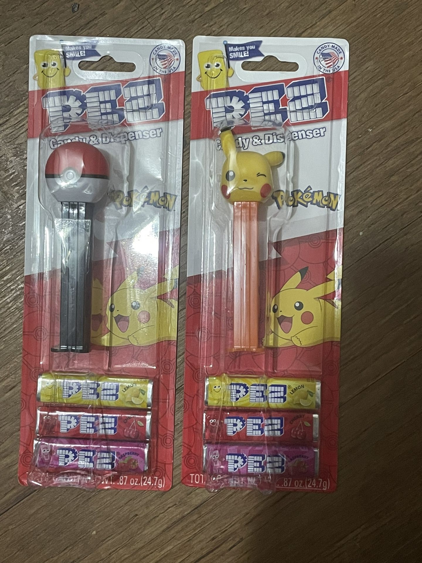 1 pikachu and 1 pokeball dispenser with packages in excellent condition