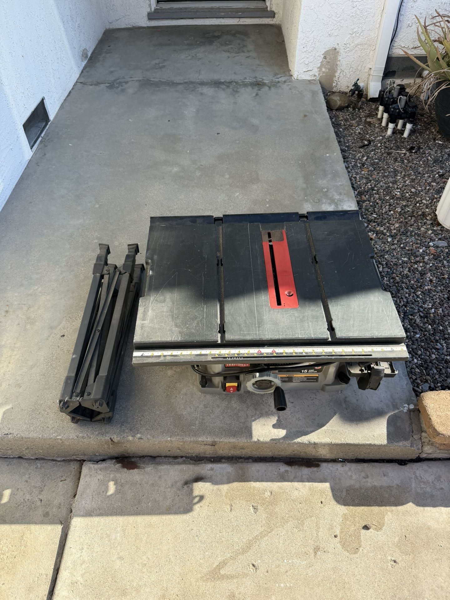 Craftsman 10-inch table saw (model (contact info removed)2), 15A, 5000 RPM, with folding stand. Used but works great, let me know if you are interested.