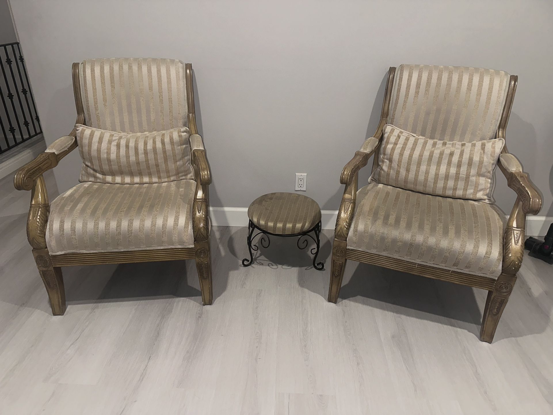 Set Of 2 Accent Chairs - Beige /antique - Free Step Stool