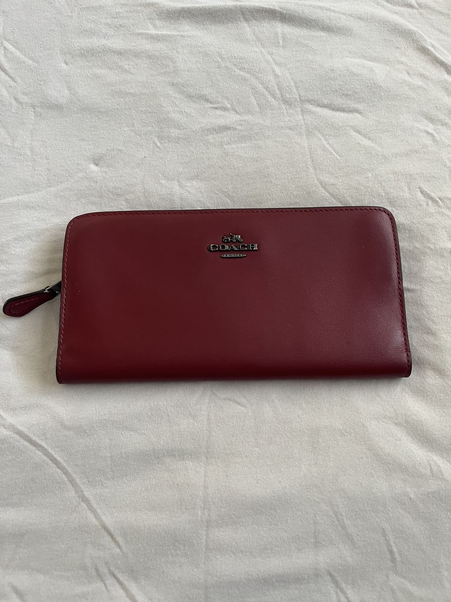 Coach leather clutch in vibrant red. Silver-tone logo hardware on front. Smooth, structured design. Minimal and elegant accessory.Check carefully the pictures It's in good condition, with a few minor signs of use. Please check the photos carefully. Thank you! $55 dlls Must pick it up! No delivery! Send me a message!
