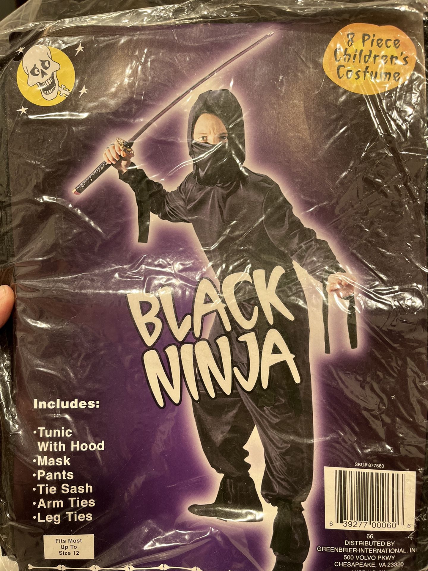 Boys Ninja Costume Brand New Fits Most Up To Size 12 Comes with tunic, hood, mask, pants, tie sash, arm ties, and leg ties