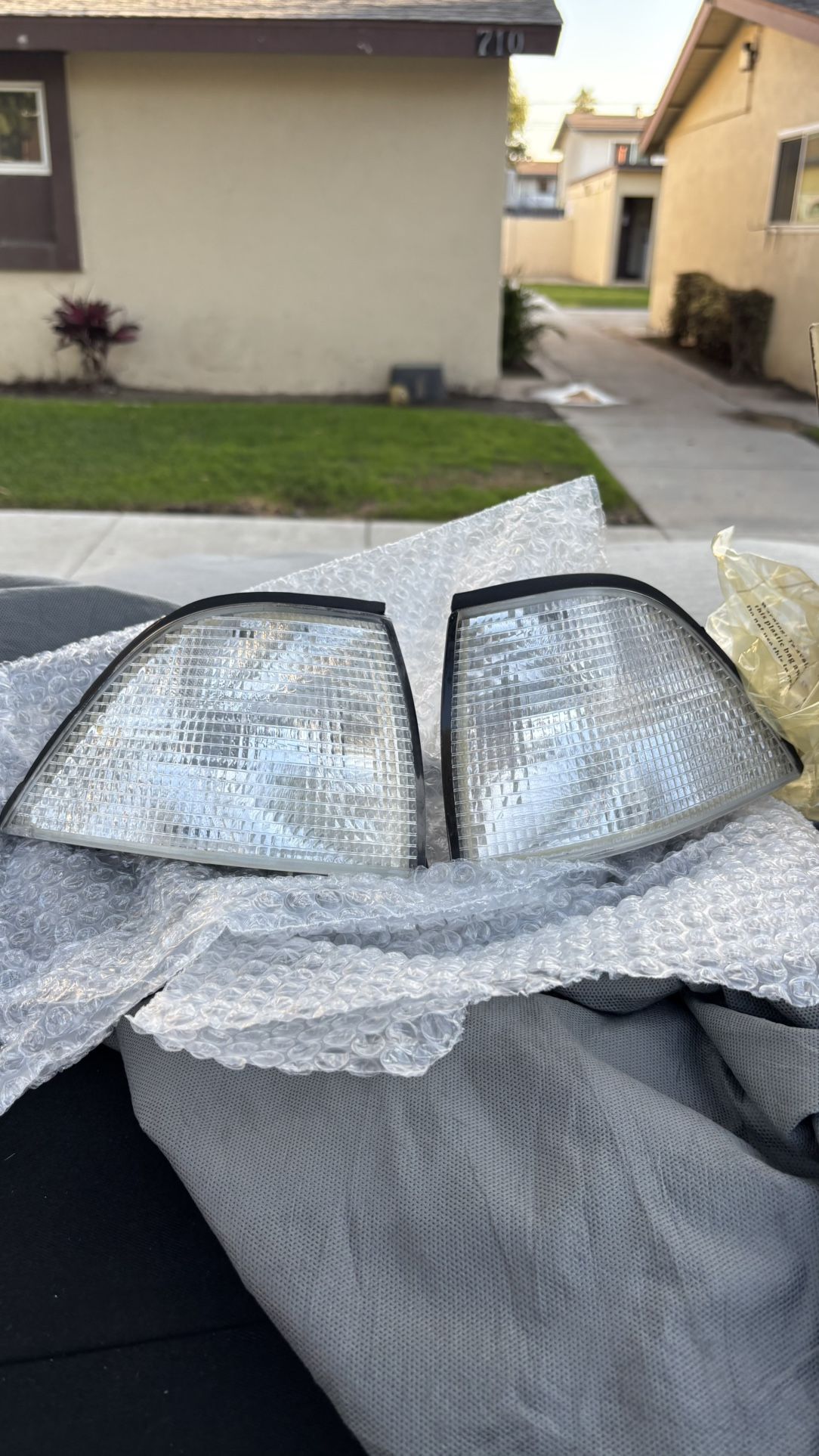 BMW E36 COUPE clear corner lights have an extra pair in my garage that i dont need anymore. !! these do have 1 tab broken on both lights but still hold onto the headlight assembly well. please inspect picture provided carefully. !! pick up only. take as is. willing to trade for other e36 coupe/vert parts specifically 318i convertible parts! lmk what you got.