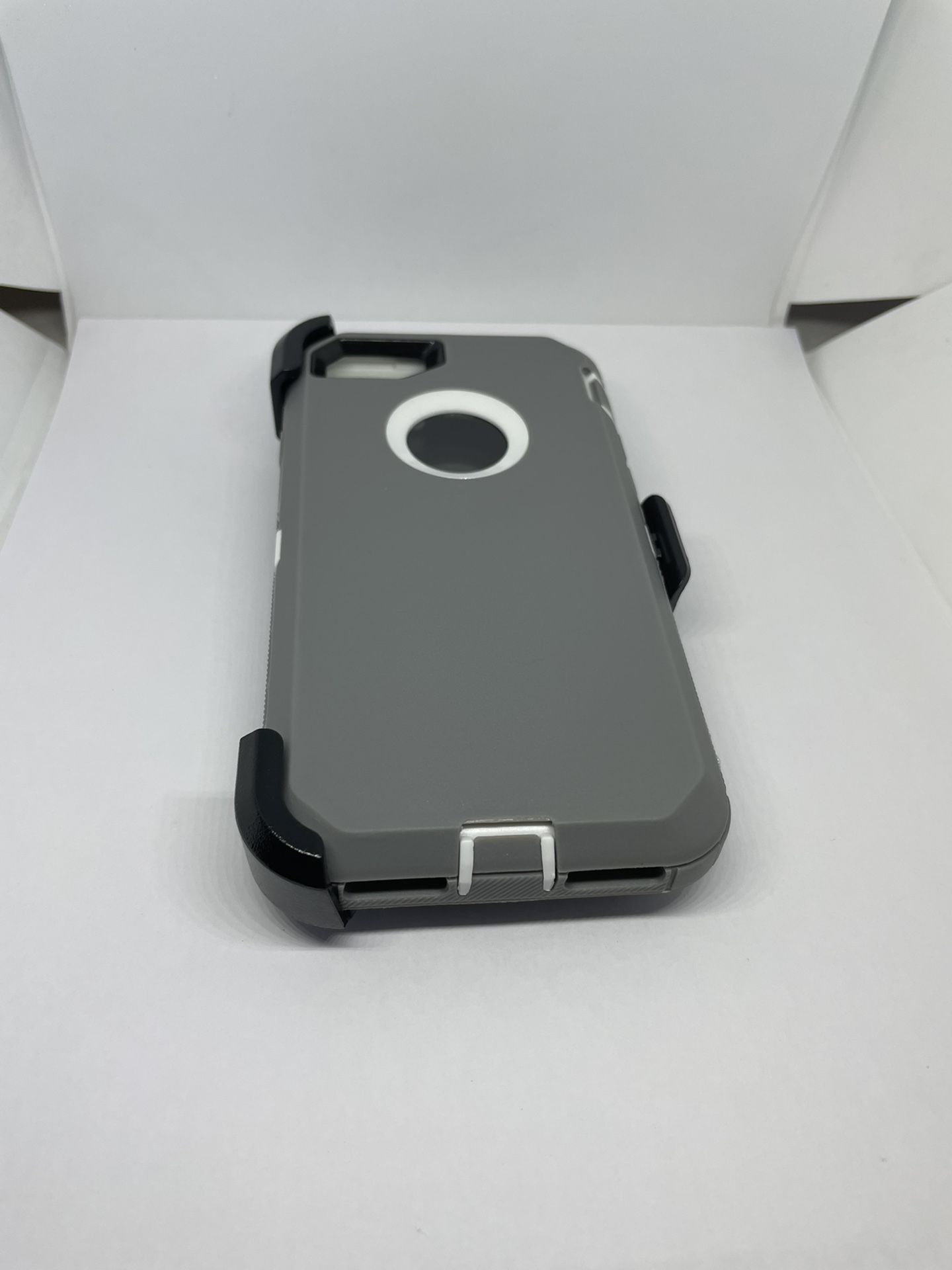 For iPhone 6, iPhone 7/8 , iPhone SE Gray With White Belt Clip Case Defender