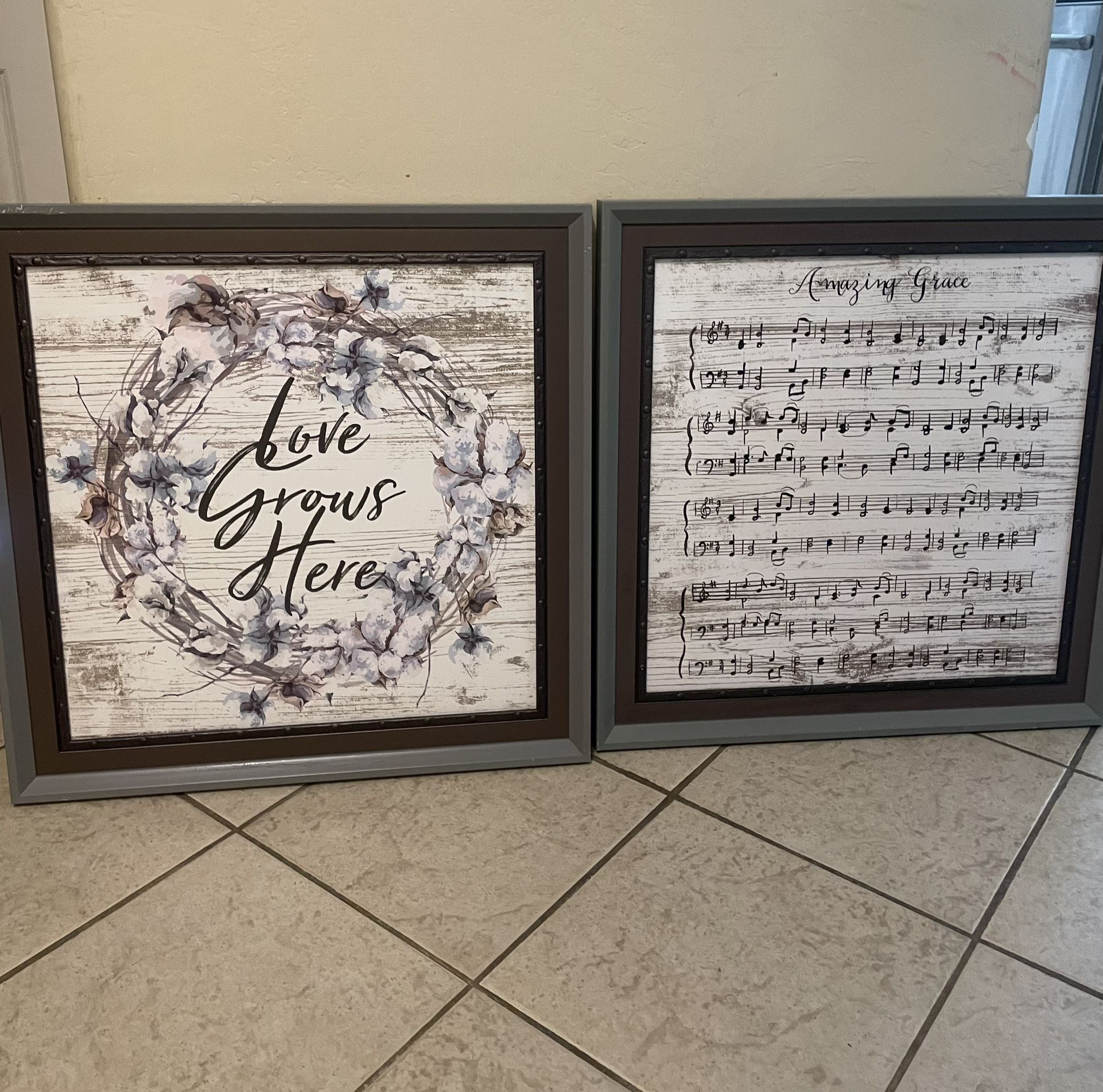 Two beautiful wall art. Music notes. 25inch x 25inch Good condition. Little scratches on one of corner. $10 for both Pick up only.