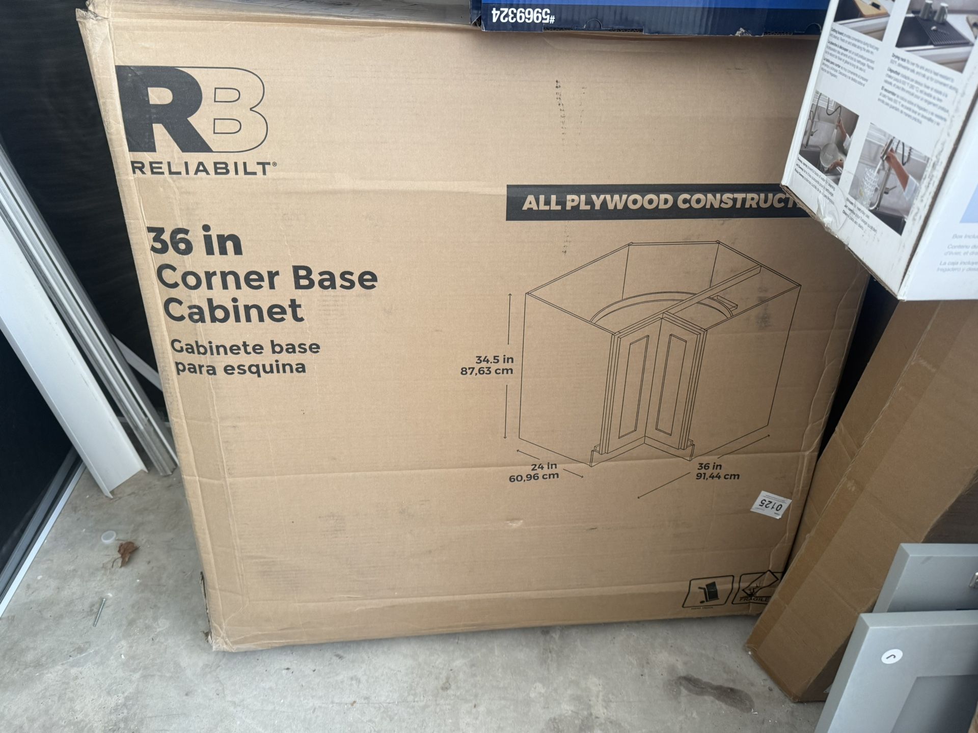 New cabinets, never used just over bought. Dark grey is 30in and the 2 light grey are 24in 2 24in-$60 each 36in corner base-$200