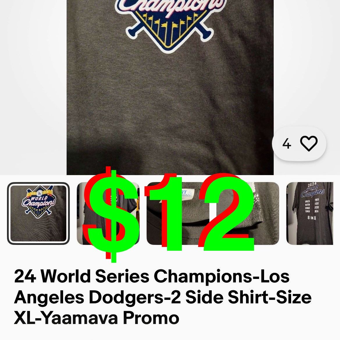 24 World Series Champions-Los Angeles Dodgers-2 Side Shirt-Size XL-Yaamava Promo
