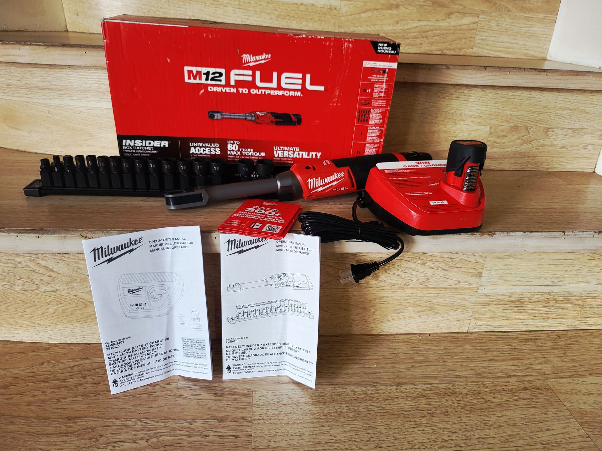 Milwaukee M12 FUEL INSIDER 12V Lithium-Ion Brushless Cordless 1/4 in. - 3/8 in. Extended Reach Box Ratchet Kit w/ (1)Battery 2.5 ah, Charger