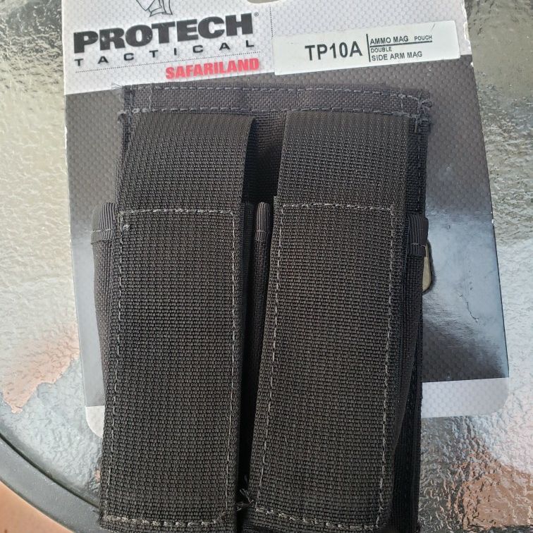 TP10A - Side Arm Magazine Pouch, Double The Safariland Double Side Arm Magazine Pouch fits two 9mm /.40 cal magazines and features enlarged hook and loop closures