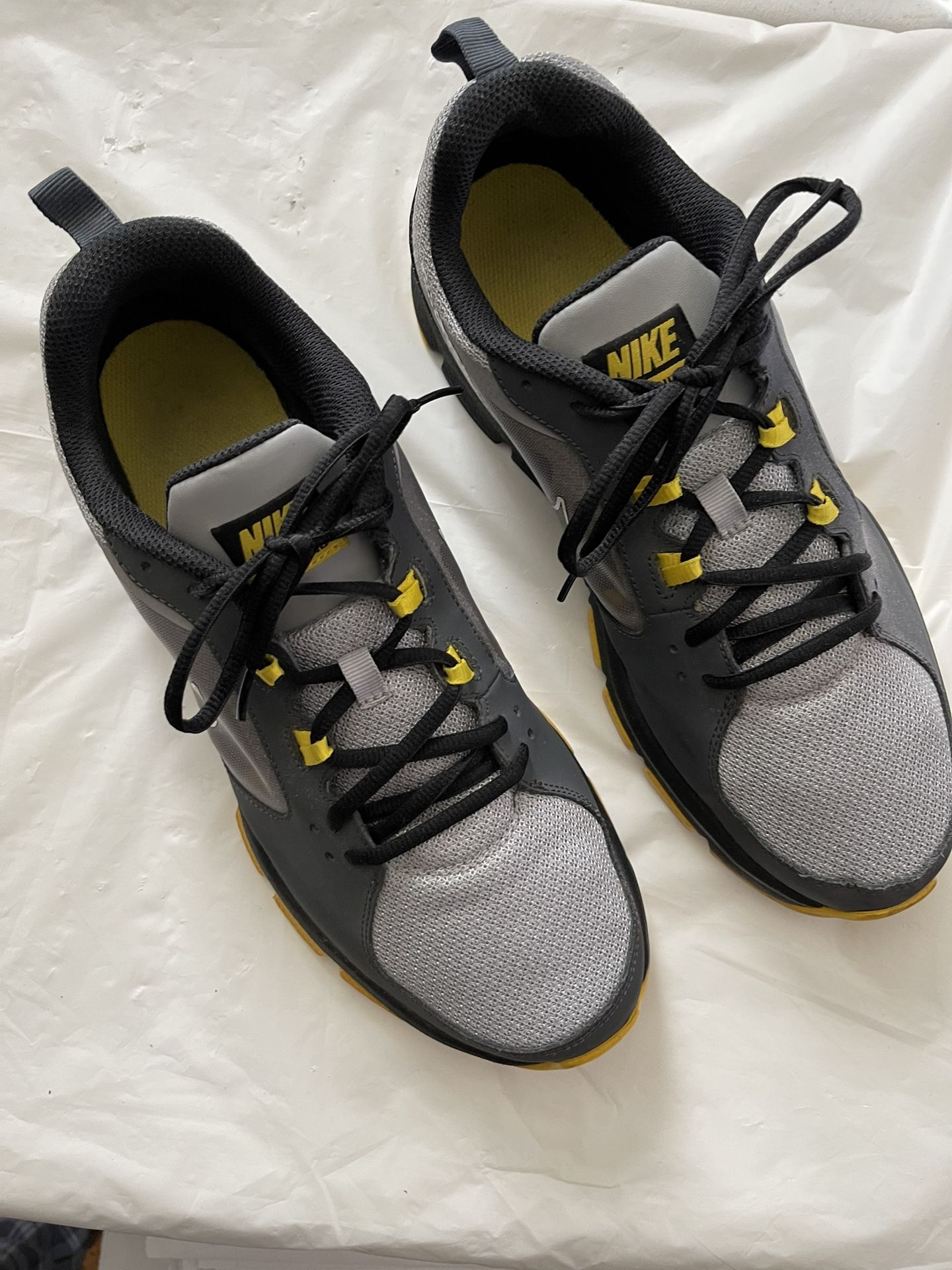 You are bidding on a pair of Like New Men’s Size 11.5 Nike Velocitrainer Training Running 🏃🏾 Shoes. Color: Gray/Black/Yellow. Pre-owned and in Great Condition. Clean and Sanitized. Asking: $35. Available for Local pickup Mon-Sun, including holidays. If Listing is up, they are still available.