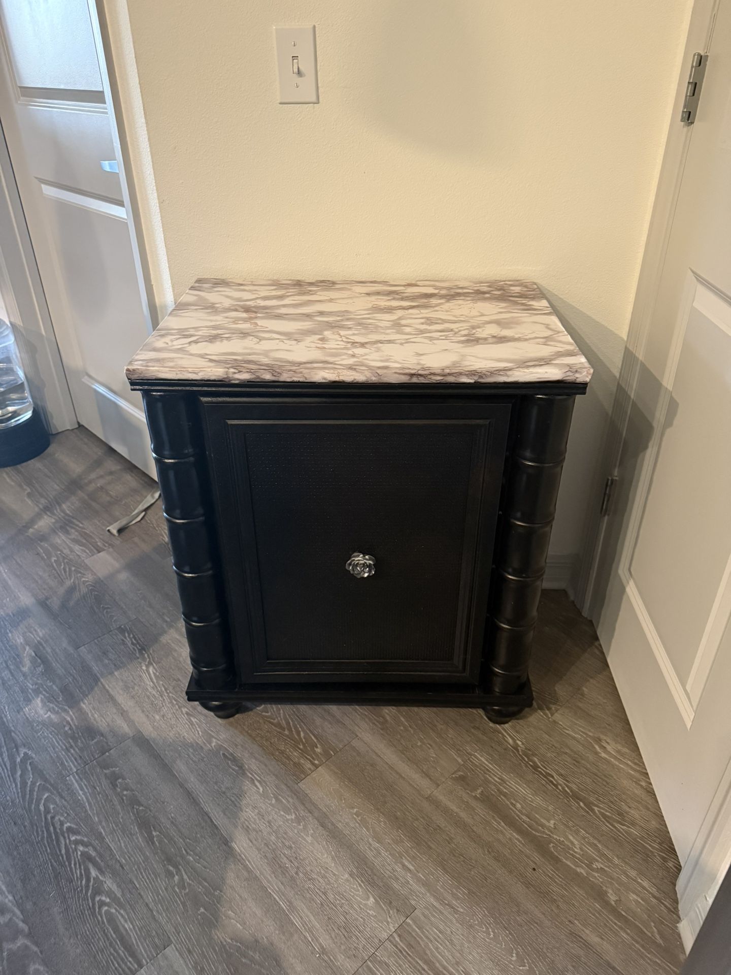 Elegant Black Cabinet with Faux Marble