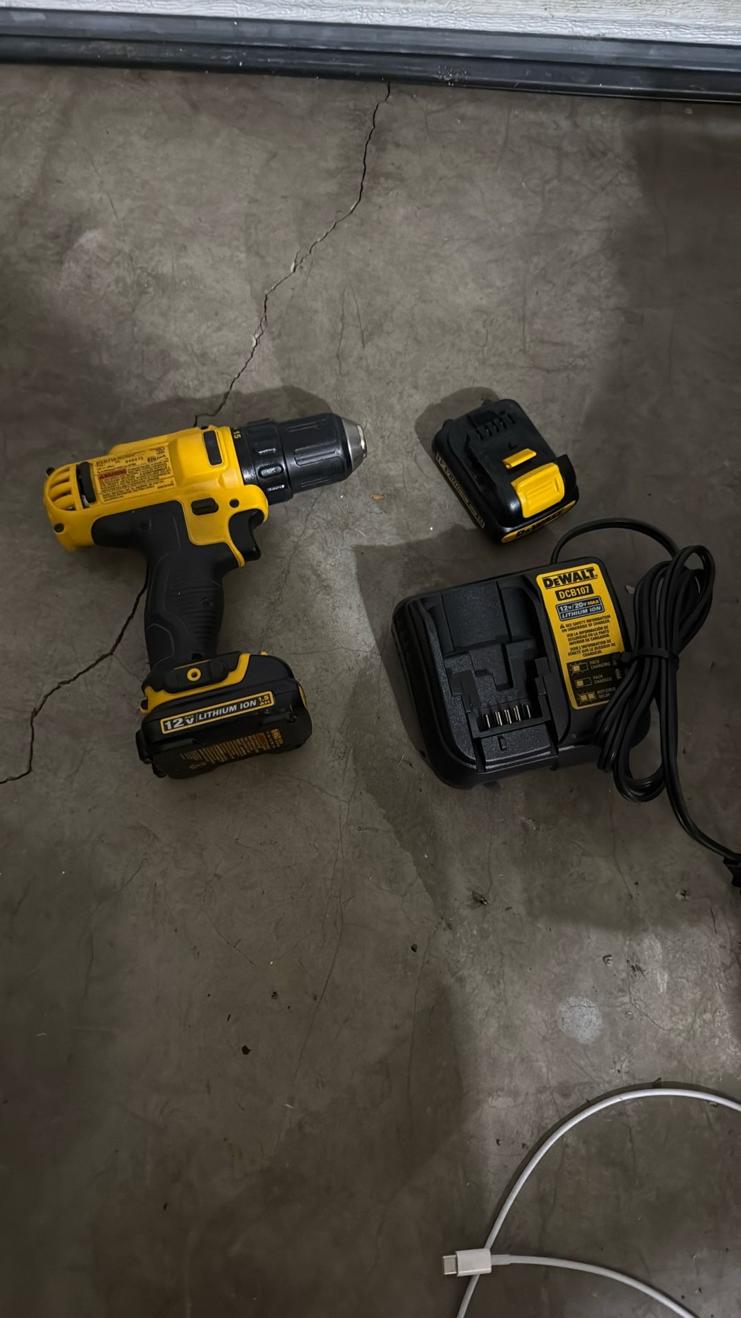 12 volt power drill with two batteries and charger. I switched to 20v and no longer have need for this