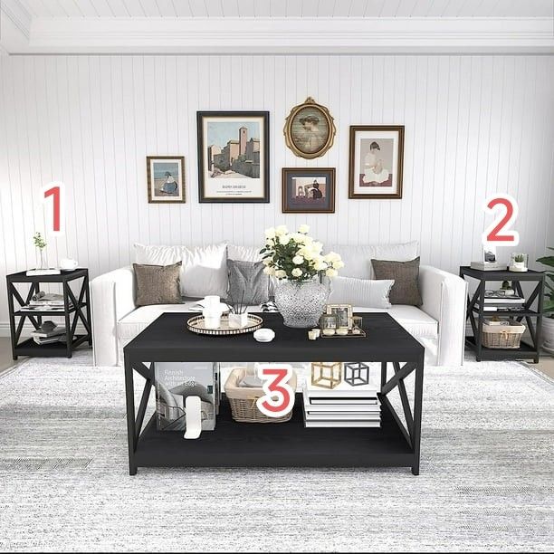 Living Room Coffee Table Set of 3, Industrial X-Design Coffee Table and 2 End Side Tables, 3 Piece Living Room Table Set with Large Storage for Apartm