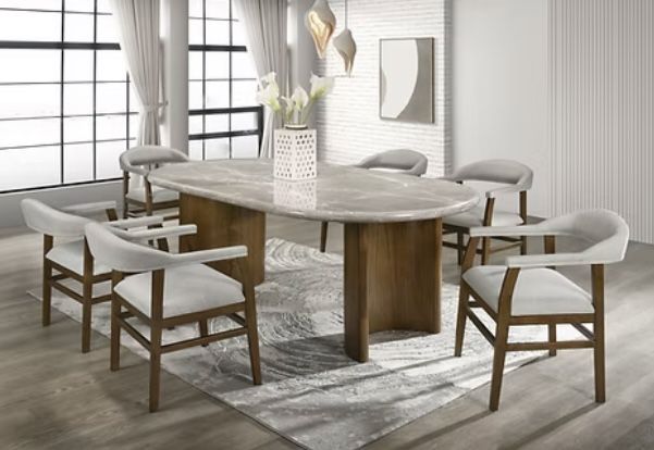 7 Pc Dining Set (1 Table and 6 Chairs) Dimension: TABLE : 86.6"L X 47.25"W X 30.79"H CHAIR: 23.43"W X 18.11"D X 30.91"H NE D1350 MV
