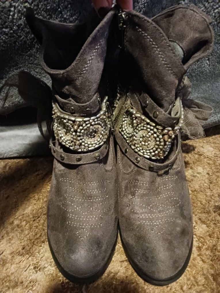 Grey boots with zipper on side. Made by Not Rated. Worn once. In perfect condition. Pick up in Spring Lake. Cash only. Size 7. $20