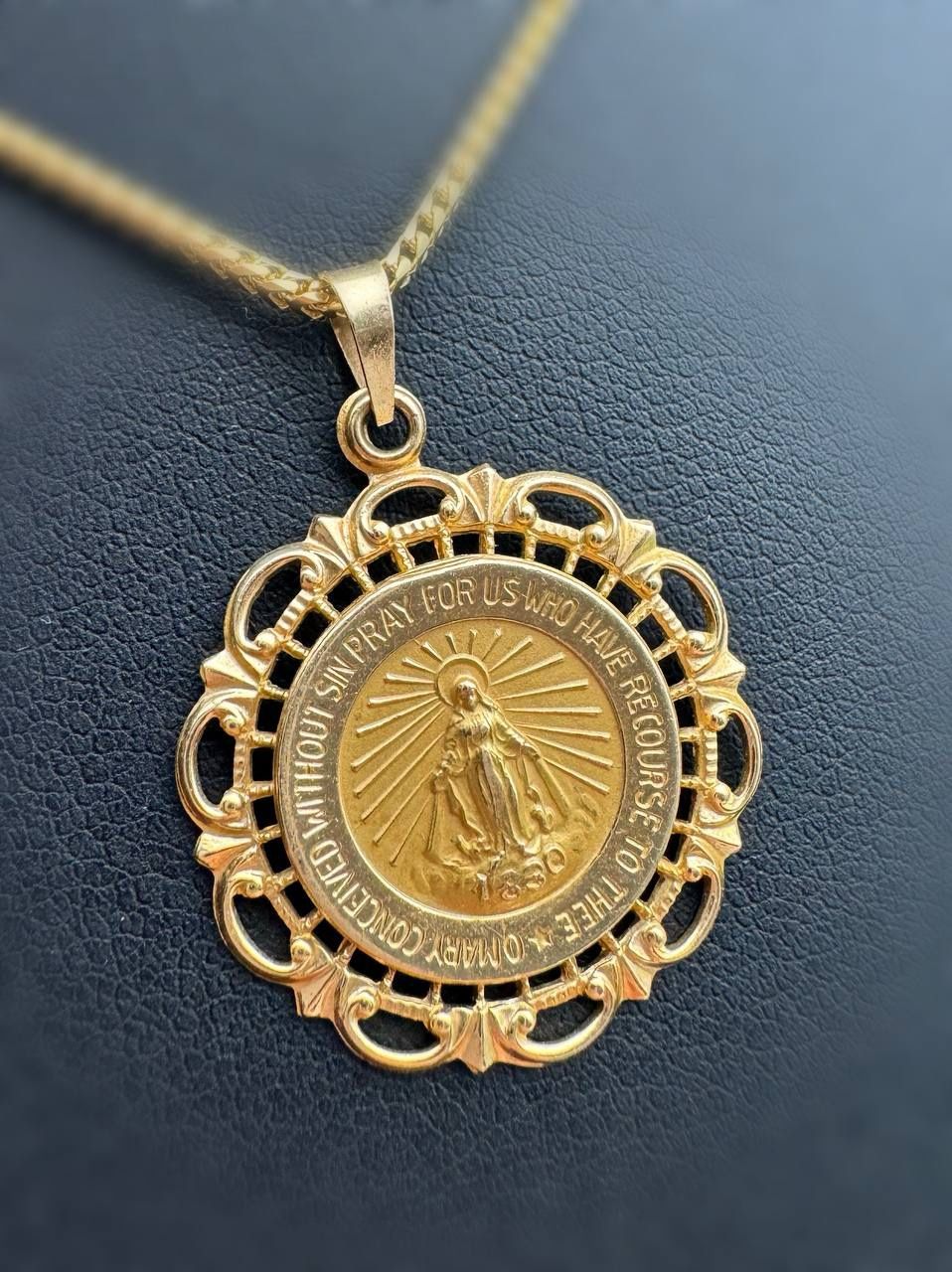 This gorgeous Religious Blessed Mary pendant is made of 14k yellow gold. Total weight: 2.30grams. It is very beautiful piece. You can wear with chain, looks very gorgeous π₯ Perfect gift! β€οΈππChain sells separately We buy Rolex and Audemars, patek . Do layaway in VIP SHOP Coral Springs π₯ππΈ We buy gold, diamonds, silver, coins π₯³π₯