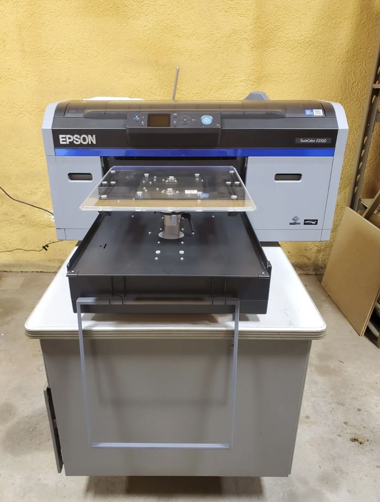 I have 2 Epson F2100 printers for sale. They both have low printing jobs on the heads and work great. I always had them serviced with Epson and purchased them in 2022. It includes different size platens and a lot of in cartridges. I’m selling for $6000 each