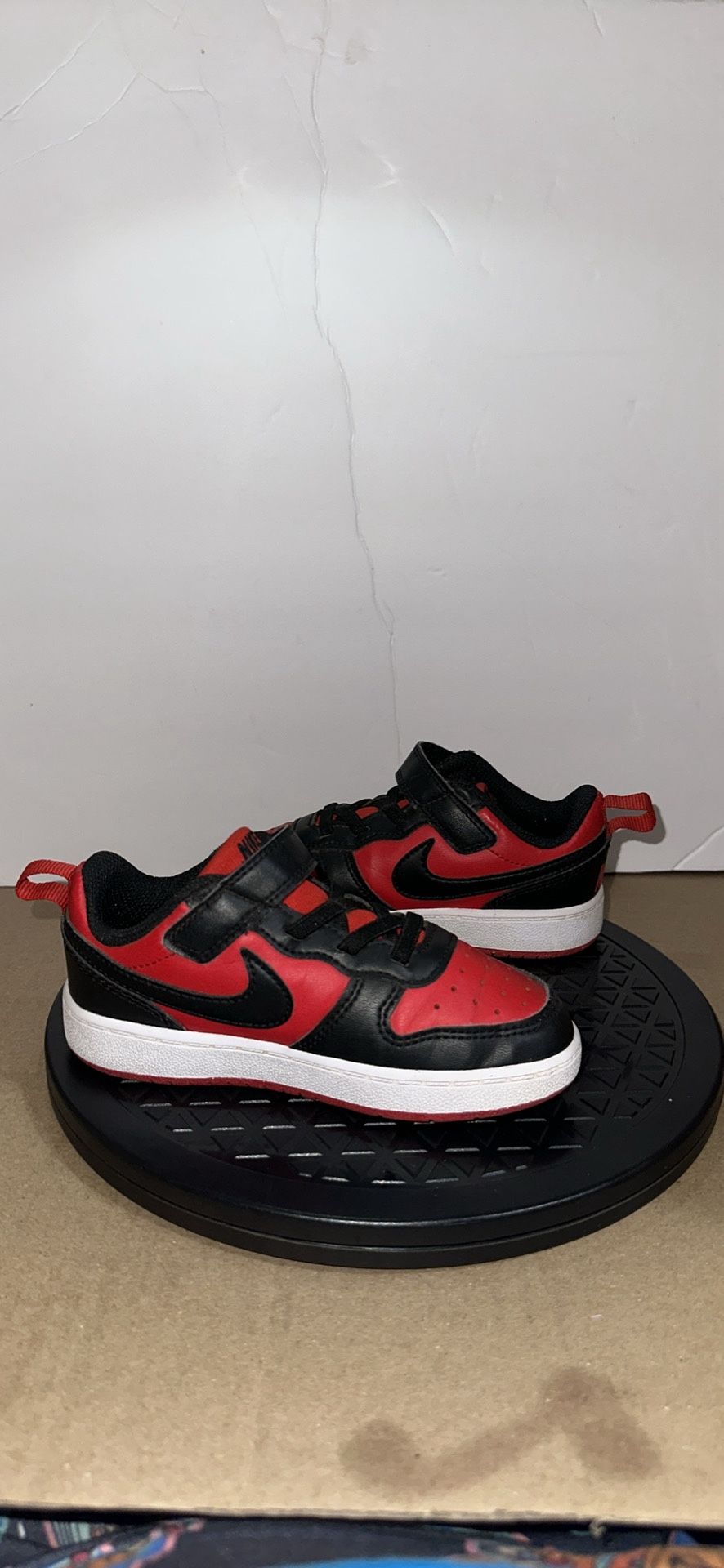 Toddler Nike Court Borough Low Recraft-Size 9 In very good condition with Minimal wear and creasing. Start your little ones off on the right foot with the Nike Court Borough. Made for the long haul, this recrafted legend uses a combination of durable materials on the upper and outsole to achieve a classic look with an easy on and off strap for entry. Plus, a redesigned toe box and midfoot give their feet a little extra room so they can charge through the day in comfort. University Red/White/Black