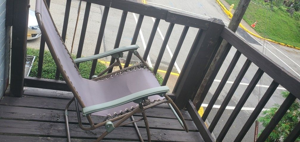 Gray outdoor lawn/lounge chair Fully extends out Comfy chair Pick up only Freedom PA