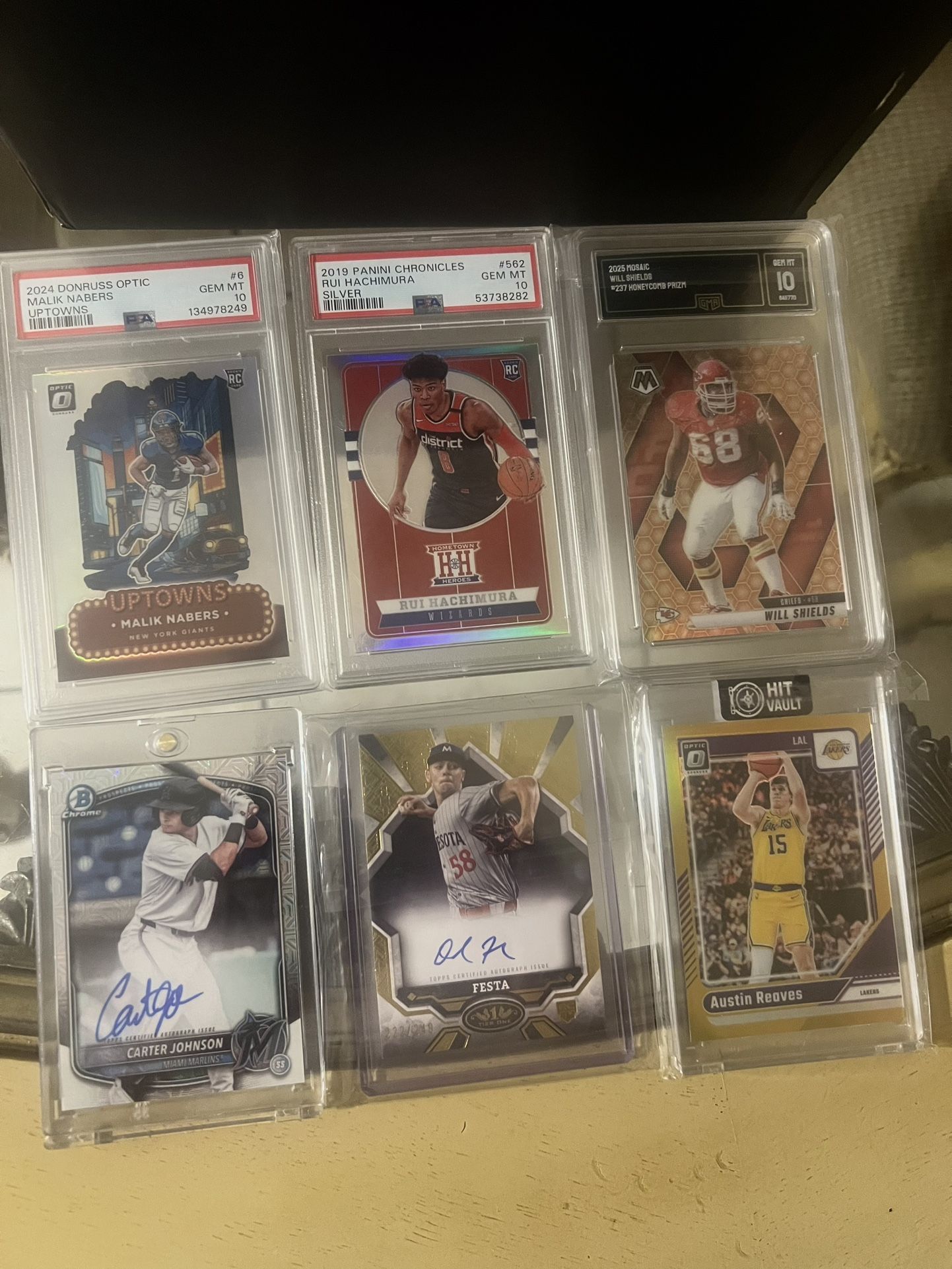 Uptown Malik Nabers grade 10 Rui Hachimura grade 10 Will Shields honeycomb grade 10 Carter Johnson autographed David festa tier one /249 autographed Austin reaves gold refractor /7