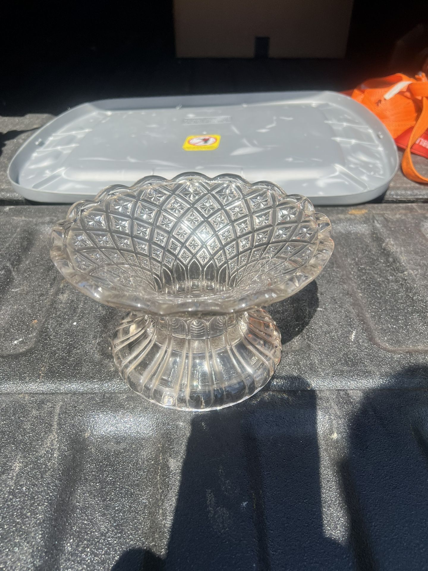 Vintage Crystal scalloped edge glass dish, 5” x 8”
