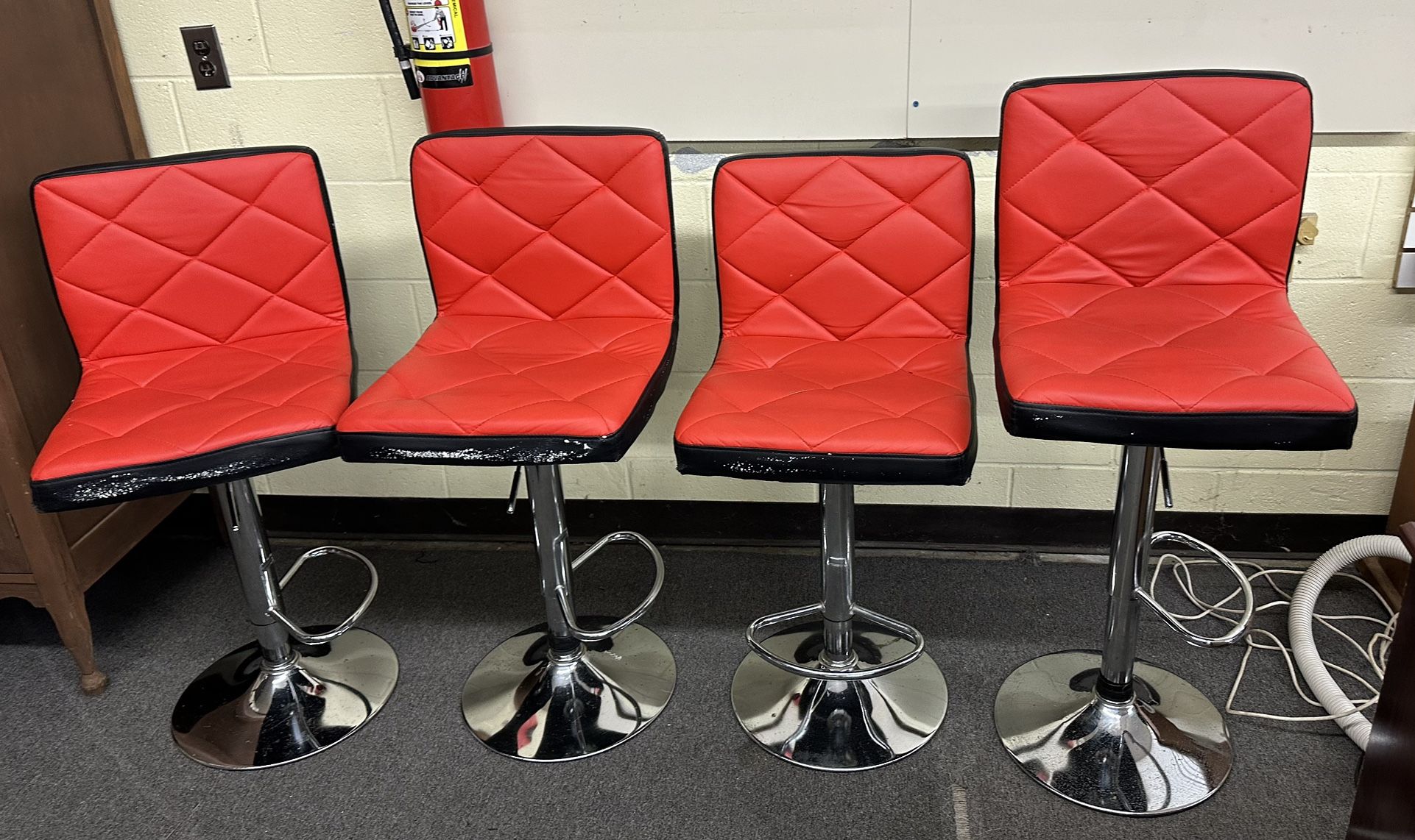 Set of 4 red leather adjustable bar stools in good condition. Must pick up in Dallas Georgia.