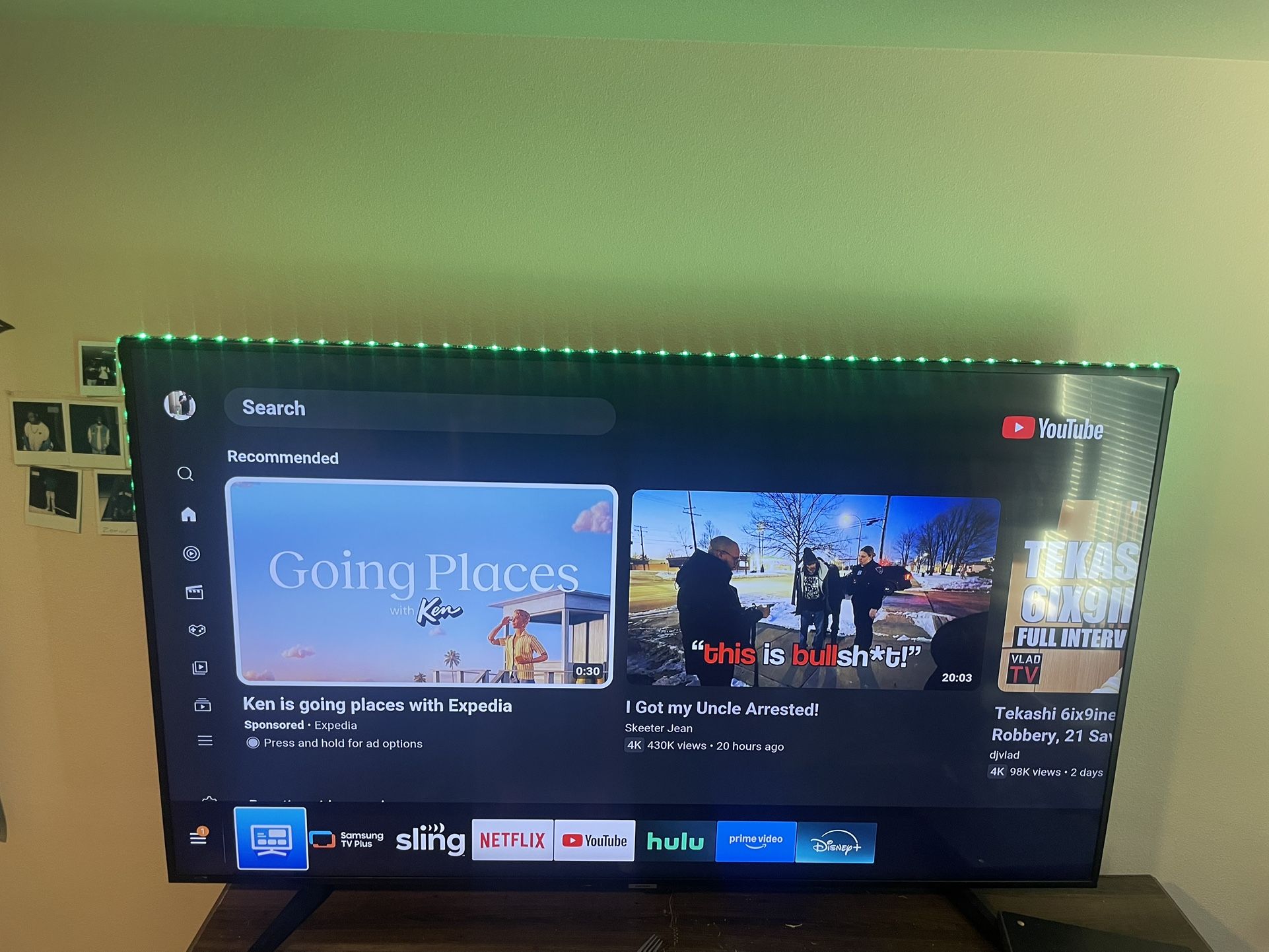 Comes with Samsung TV plus Hulu Disney+, YouTube Netflix prime video