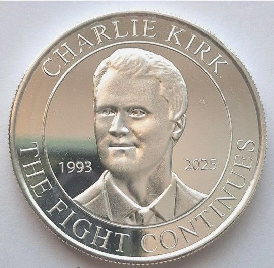 Charlie Kirk Commemorative Coin. 1 troy oz .999 Fine Silver Local Pick Up Only My price of $100 is not going to change so anybody who sends me an offer of message offering less will be ignored. If you can find this coin for less than what I'm offering you should jump on it. Cash only.