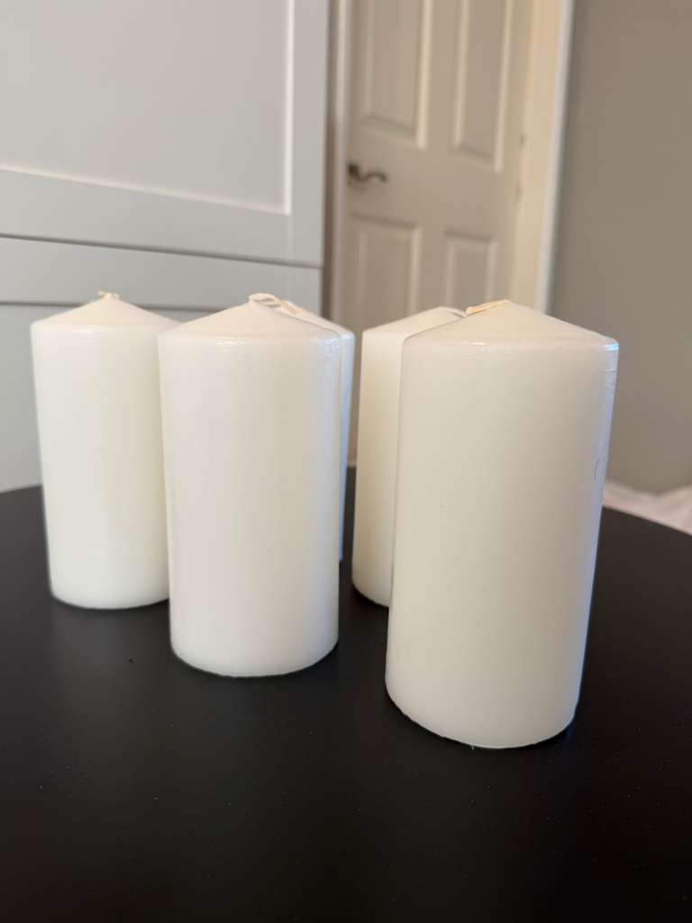 5pk 3" x 6" Unscented Pillar Candles White. Paraffin Wax. 130-Hour Burn Time