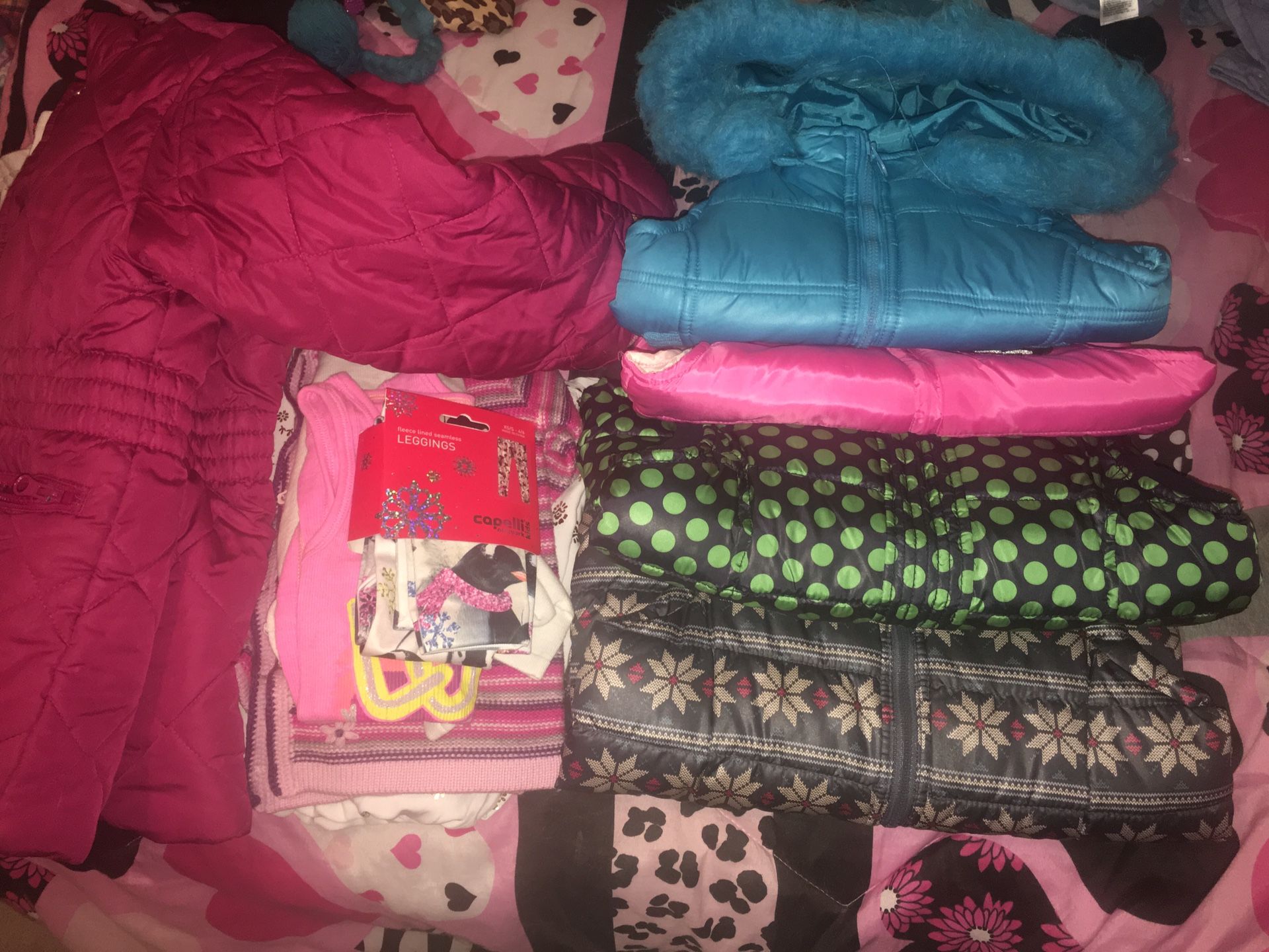 4 bubble vests(gap kids, old navy, justice), 2 sweaters, brand new 2 pack leggings. $15