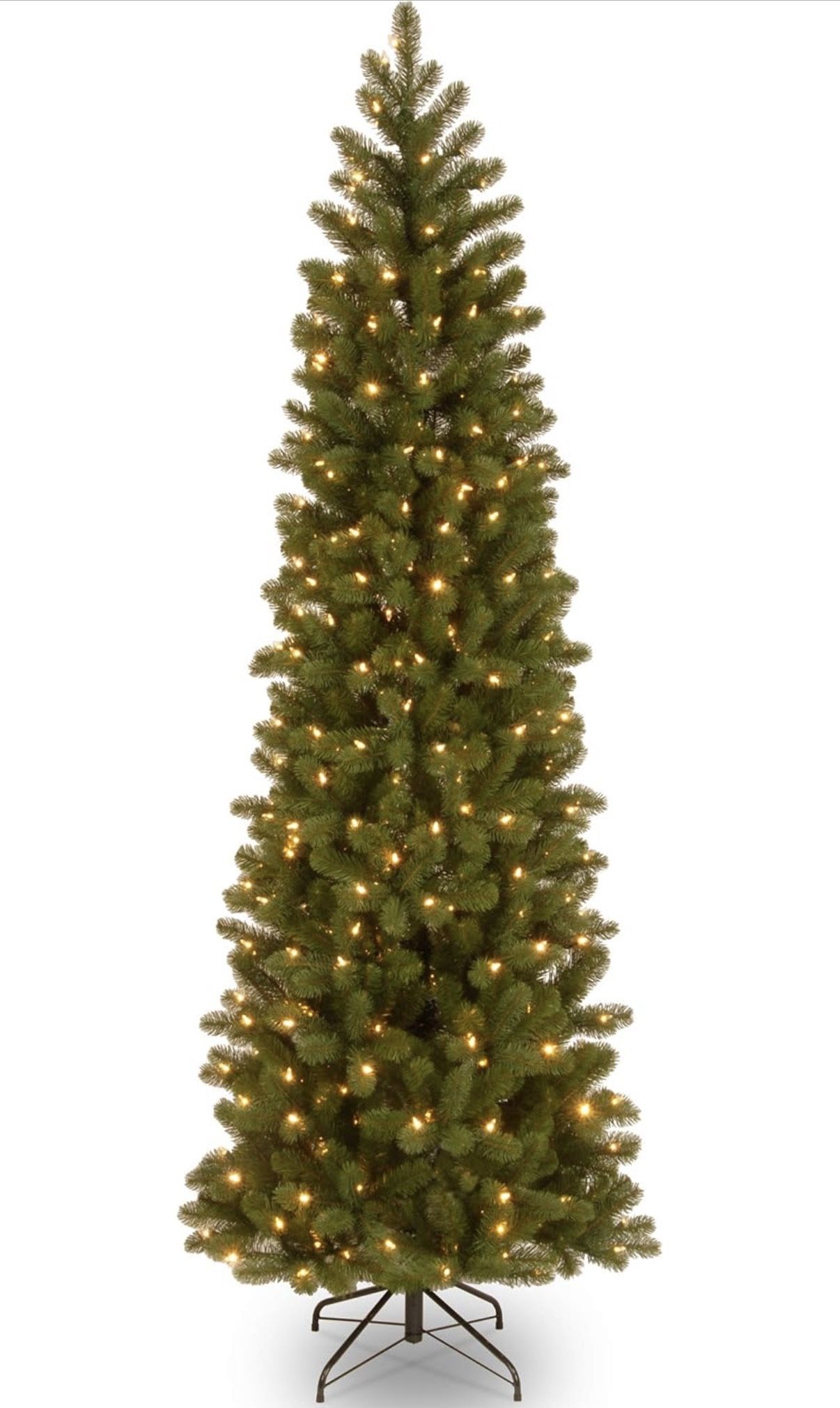 Brand new lll National Tree Company 7.5 ft Pre-Lit Downswept Douglas Fir Slim Artificial Christmas Tree, 350 Clear Lights, 796 Tips, Includes Stand, Green
