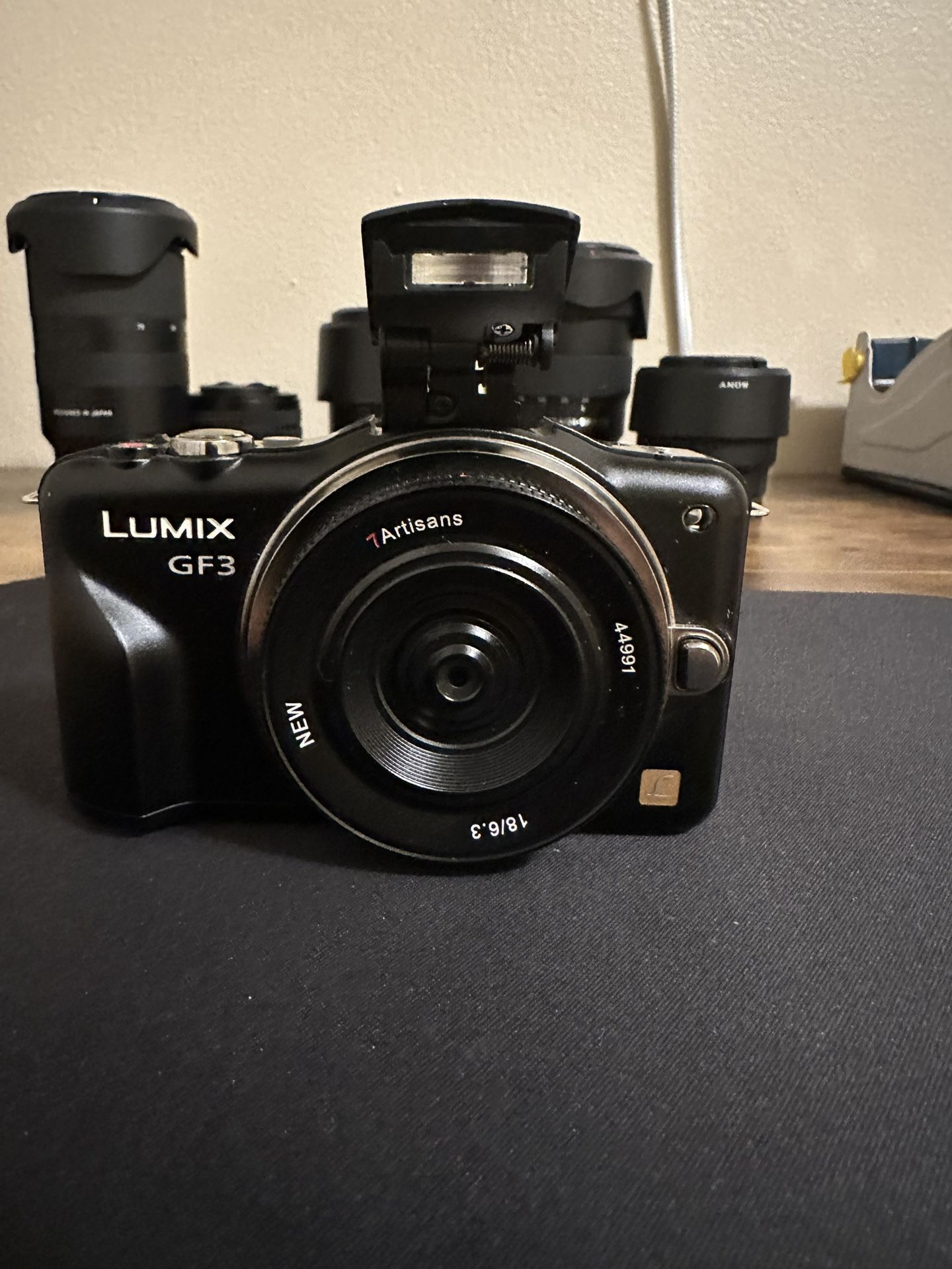 Selling a Panasonic Lumix GF3 mirrorless camera with a 7Artisans 18mm f/6.3 pancake lens. Compact, lightweight Micro Four Thirds setup—great for street photography, travel, or as a beginner camera. Camera works flawlessly. Lens glass is clean with no scratches or fungus. Simple, fun setup for everyday shooting. Details: Camera: Panasonic Lumix GF3 (12.1MP, Micro Four Thirds) Lens: 7Artisans 18mm f/6.3 (manual focus) Compact & lightweight Great for street / casual photography Includes: Panasonic GF3 camera body 7Artisans 18mm f/6.3 lens 1 battery