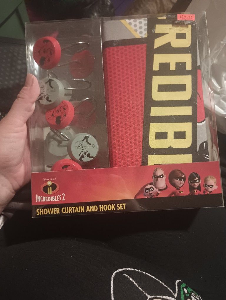 Brand New - Never Opened - Incredibles 2 - Shower Curtain and Matching Hook Set Selling for $10