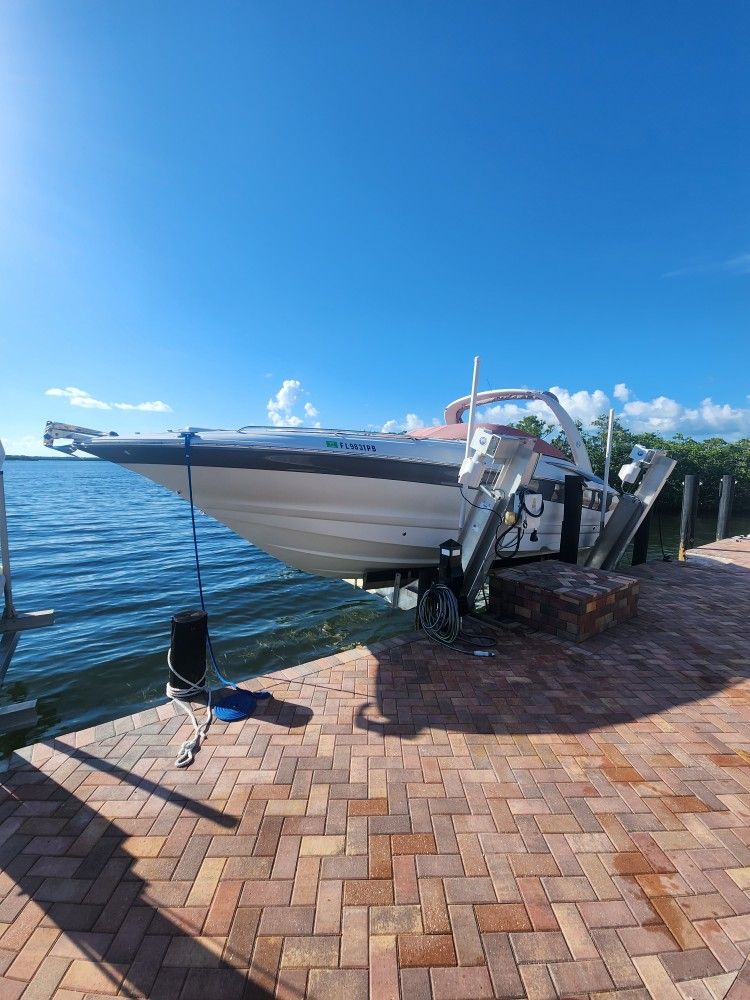 Fresh paint, fresh seats. 32ft. Twin 300hp mercs. Micro, head, berth. Fridge, wet bar, lounge seating. Located in fort lauderdale on trailer.