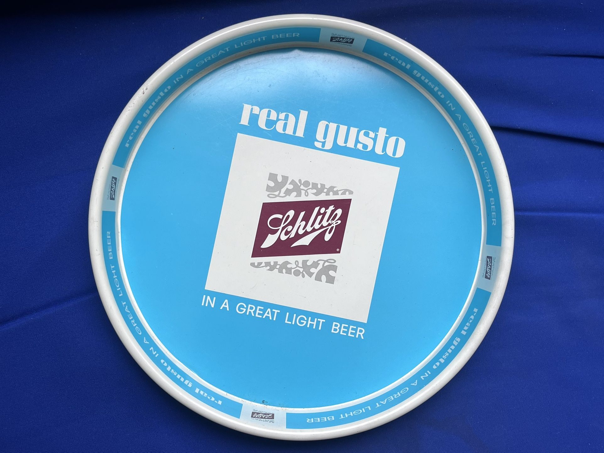 13-1/2” Diameter painted steel serving tray for beer and other drinks. Classic 1950s vintage, graphic and highly collectible.