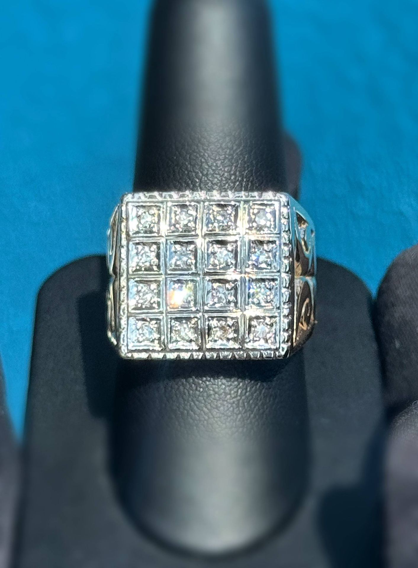 18k solid rose gold 0.55CTW Natural Diamond square pattern fashion ring sz 9.5