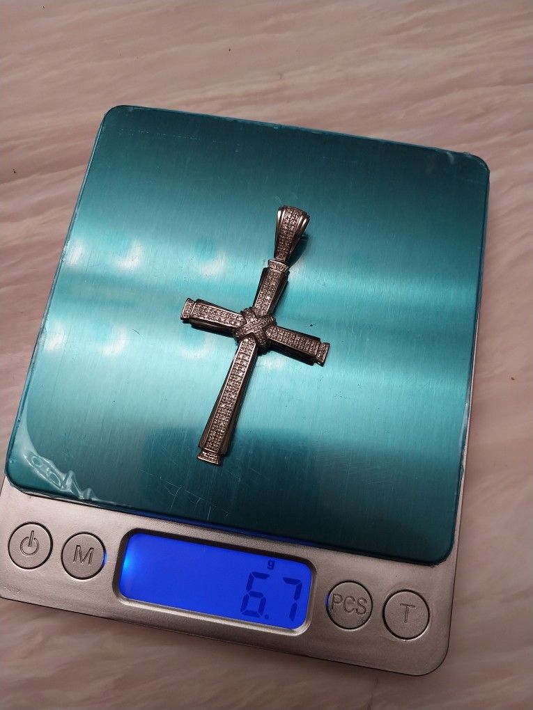 10kt White Gold Natural Diamond Cross 6.7 Grams 1 Cttw In Diamonds, you can test the diamonds and gold 2 inches
