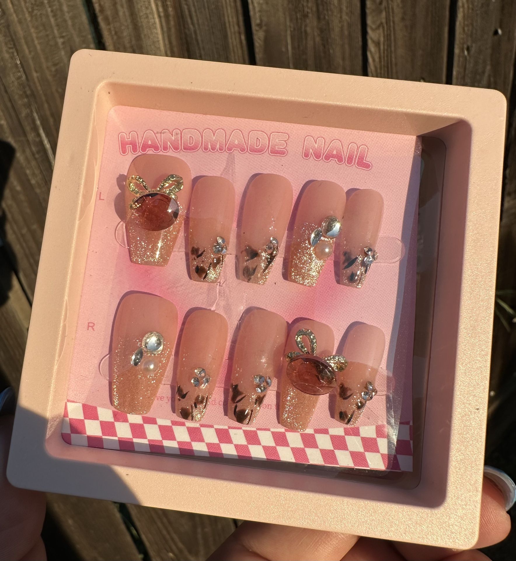 Super cute Handmade Nails Glittered & Stones Glue not included Size M