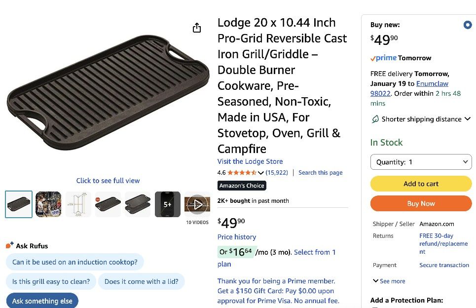 Lodge Reversible Cast Iron Griddle Great Condition, we just don't use it like we thought we would. 20" x 10.44" ๐น Pickup in Enumclaw ๐น Smoke Free Home ๐น No Holds - Unless you'd like to pay ahead of time with Venmo