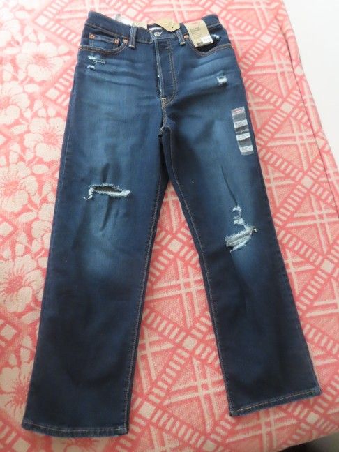 new with tags Levis Ribcage Straight Ankle Jeans Womens 28x27 Blue Distressed Button Fly Denim waist 29 length 26 hip/thigh 11.5 ankle 8 rise 12