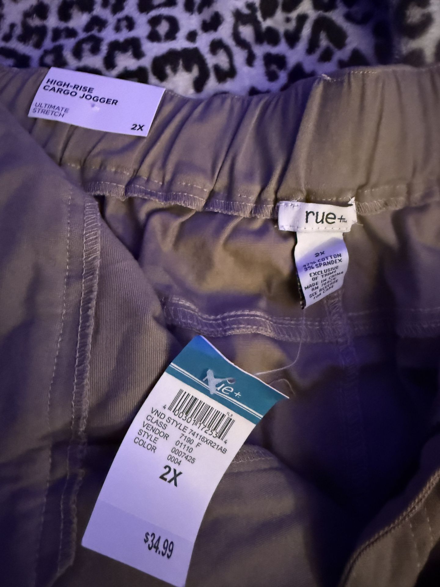 Brown cargo pants w pockets on side, cuffed at ankles, never worn and new with tags!