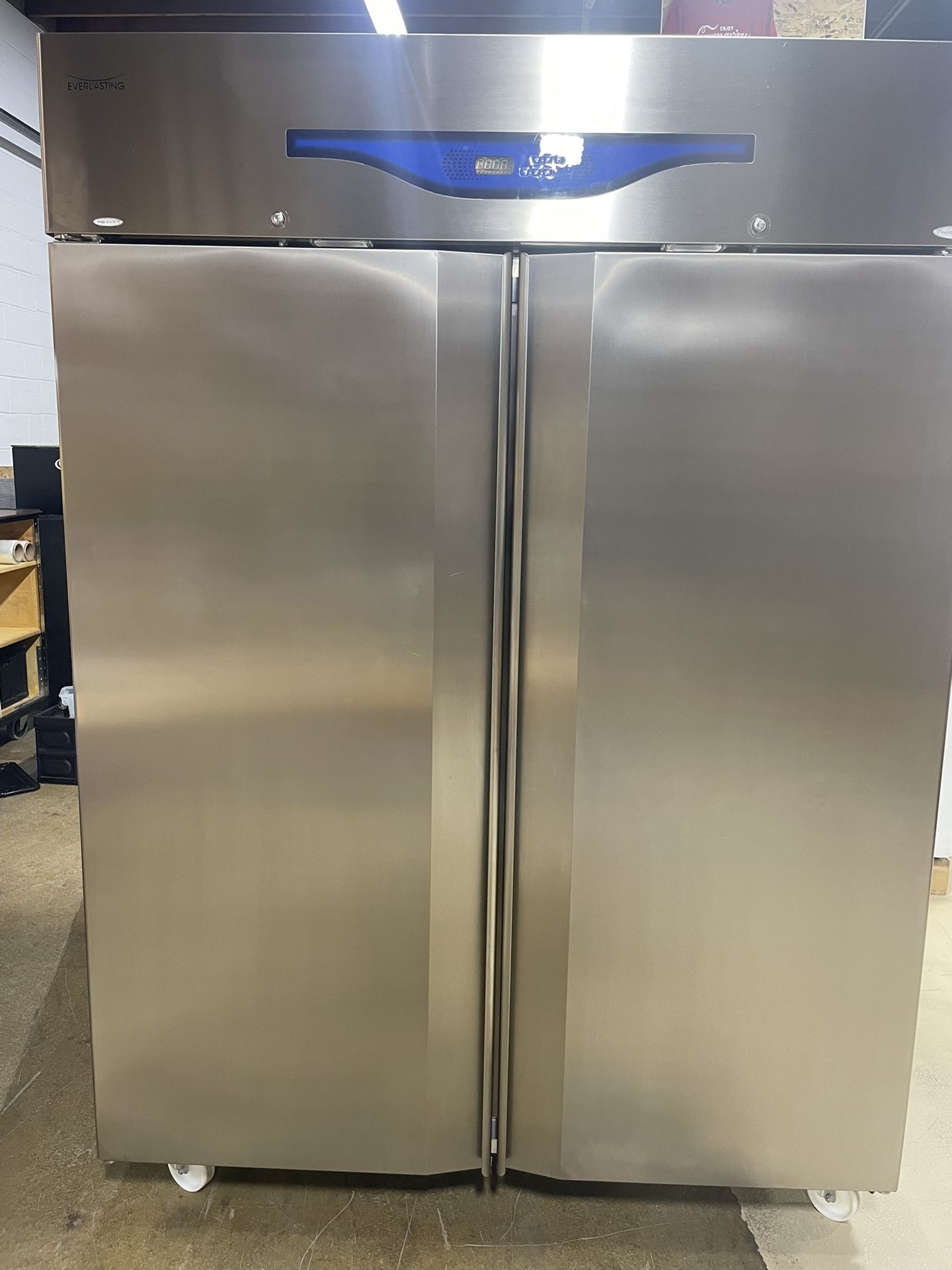 Everlasting (Italian made) freezer on wheels. Double door industrial unit with racks. Unit works great and was well maintained. Cash only.