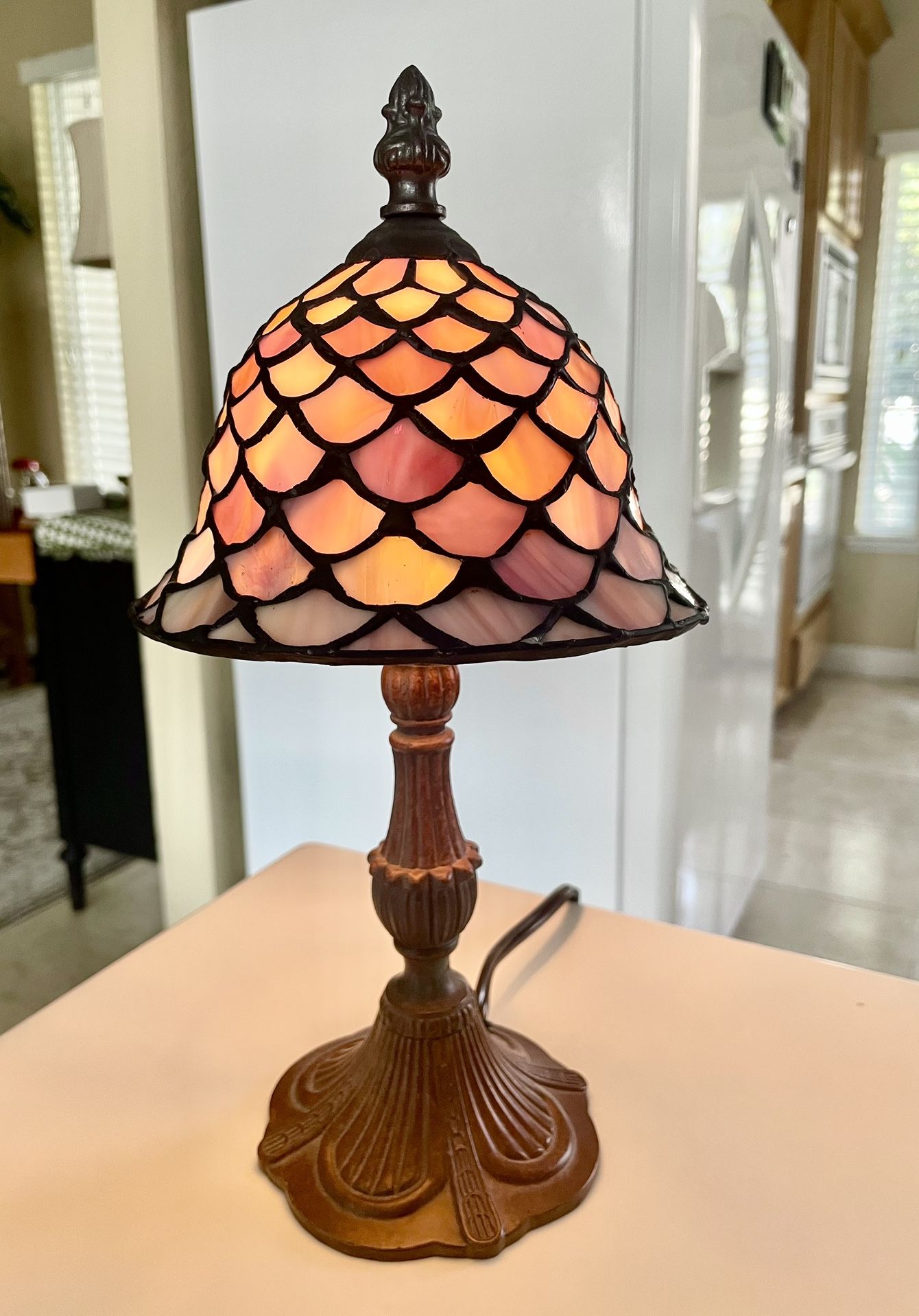 Quoizel Stained Glass Small Accent Lamp With Fish Scale Design Glass Shade. Finial Is Not The Correct One For This Lamp Otherwise Perfect Condition