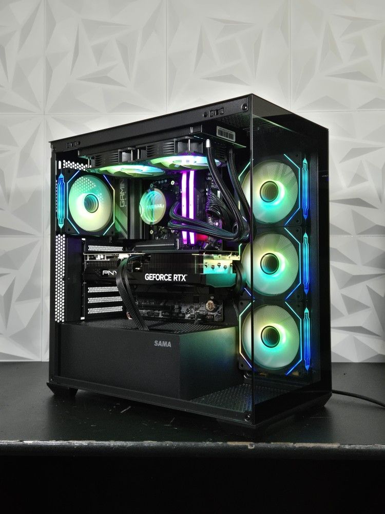 Powerful gaming PC featuring an RTX 5070 Ti for smooth 4K gaming. Fast CPU, SSD storage, and plenty of RAM for high FPS performance. Clean build, runs great, and ready to go. Perfect for gaming, streaming, and content creation. SPECS: ✓ RTX 5070ti 16GB PNY | New GPU ✓ Ryzen 9 7950X Liquid-Cooled | New CPU ✓ 32GB DDR5 Corsair RGB Ram ✓ 2TB Samsung 860 Pro SSD Storage ✓ Gigabyte B650 X AX V2 Motherboard ✓ 750W Gold-Rated | New PSU Need a monitor, keyboard, or mouse? I have extras available if needed. I offer a range of gaming PCs, all fully tested and ready to go. You're welcome to visit my office and try one out before buying — I'm open daily.