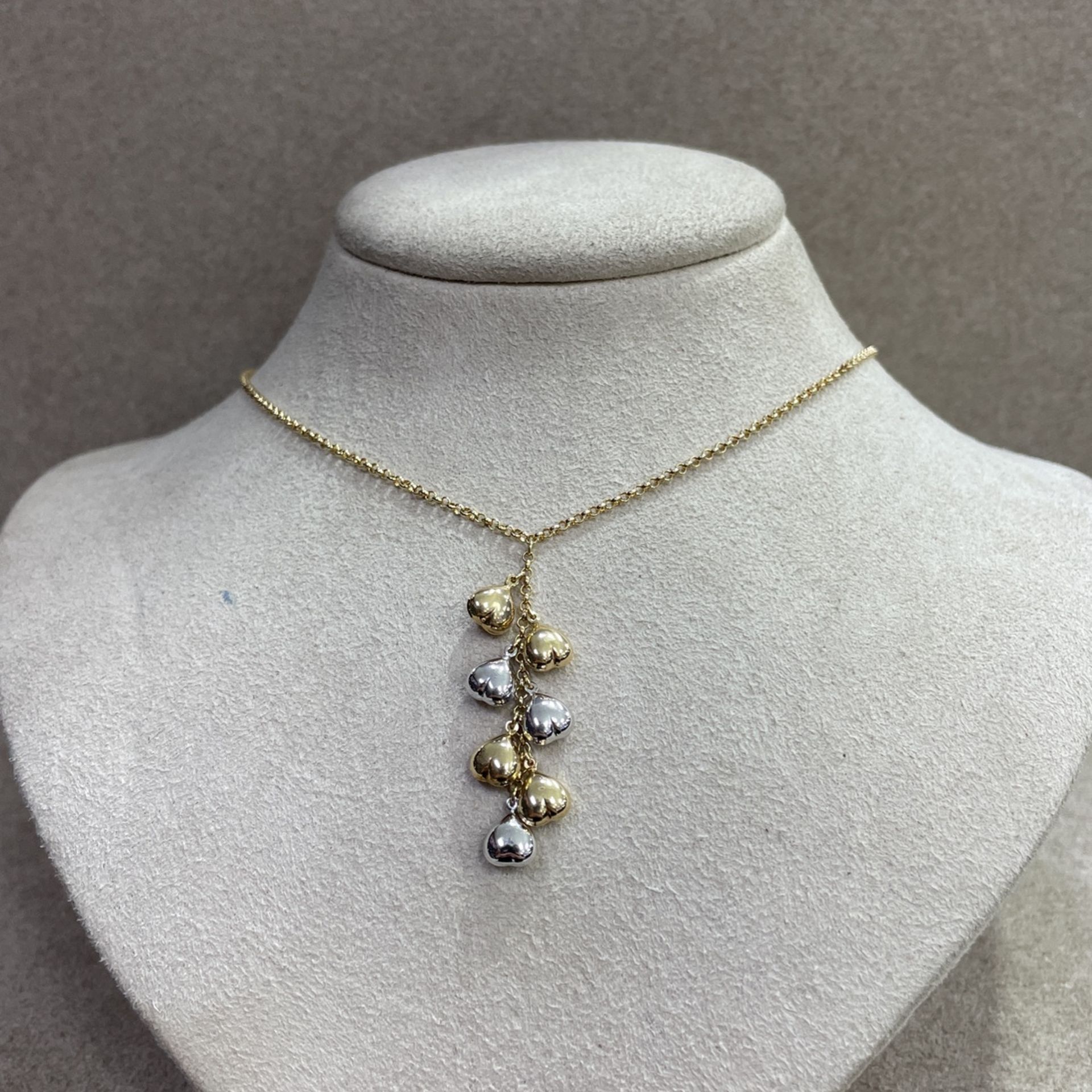 14k Yellow gold Thin chain with 7 hearts white gold and yellow gold Grams : 5.5 Size : 17