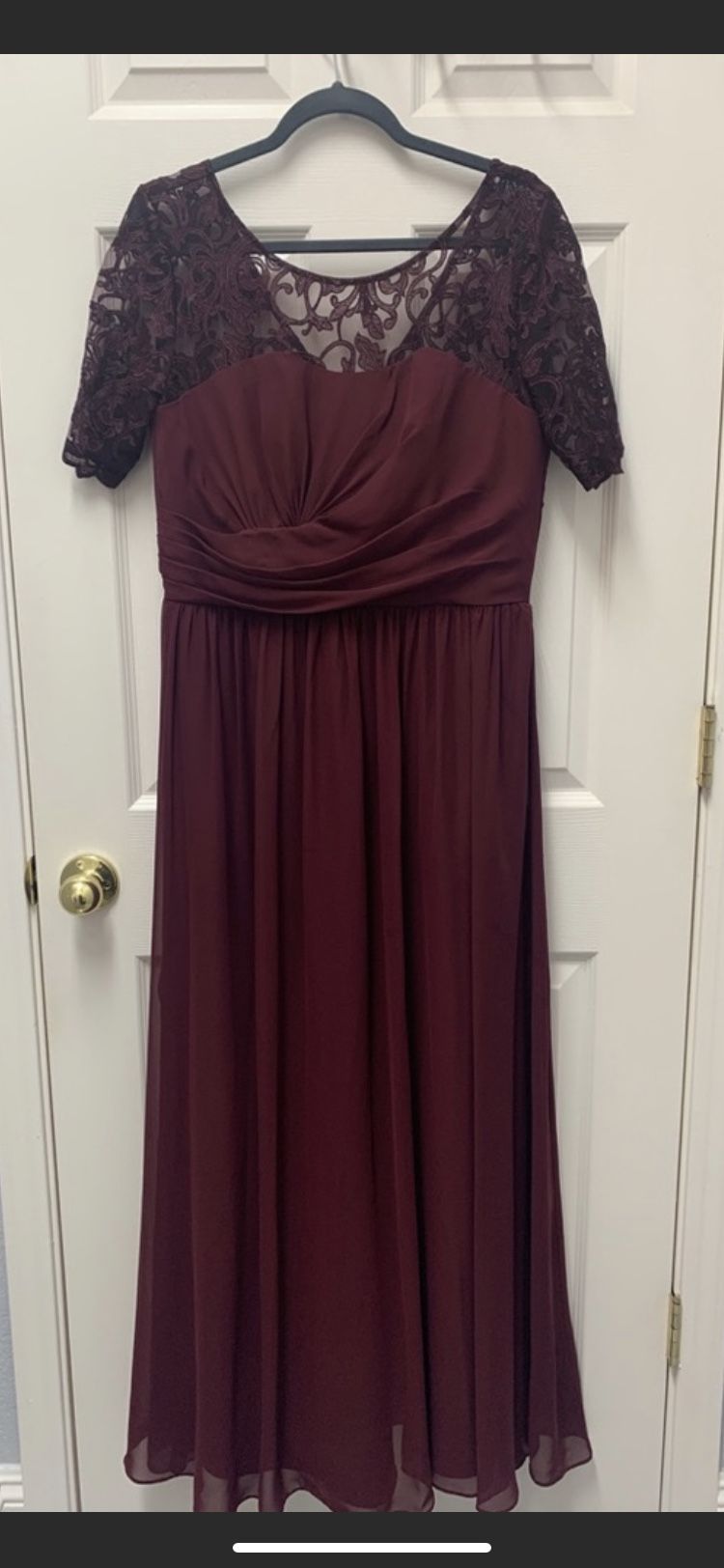 Gorgeous Chiffon Alfred Angelo Bridesmaid Gown in Bordeaux wine red *ALTERED for the beautiful ADDED Lacey sleeves! Worn ONCE/ Dried Cleaned✨ 🏷Paid $179 — asking $120 OBO *Also padded — wore without a bra!