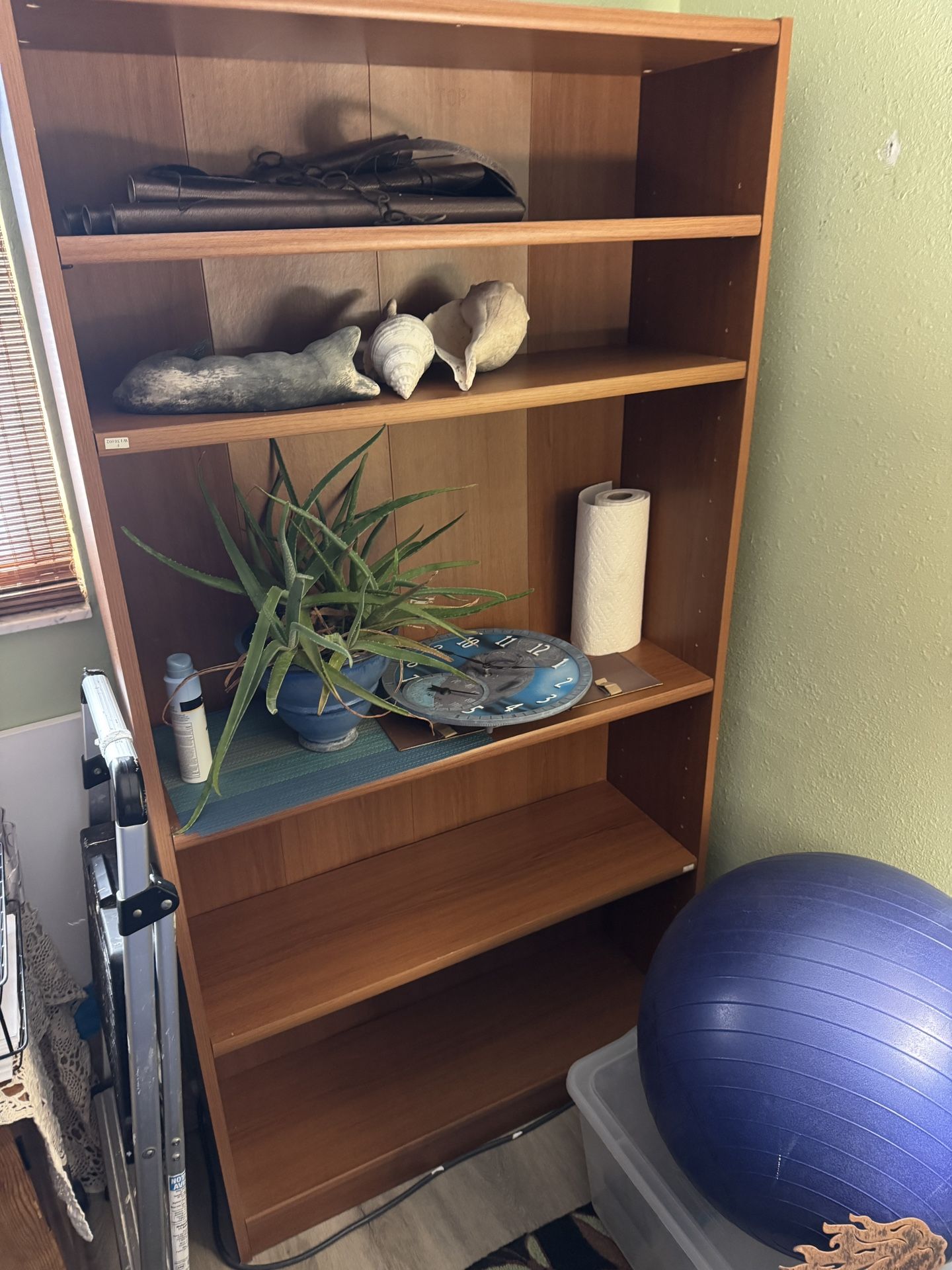 2 wood finished bookshelves Priced per unit 2 available 71.5”h x 37.5” w x 11.5” d *Items on shelves not included