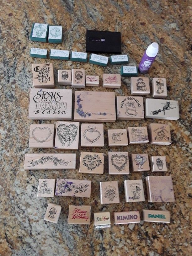 Enormous 40 Rubber Stamp Collection Huge variety Religious, Holiday Thank You, Birthday and Everything ! Hardly Used