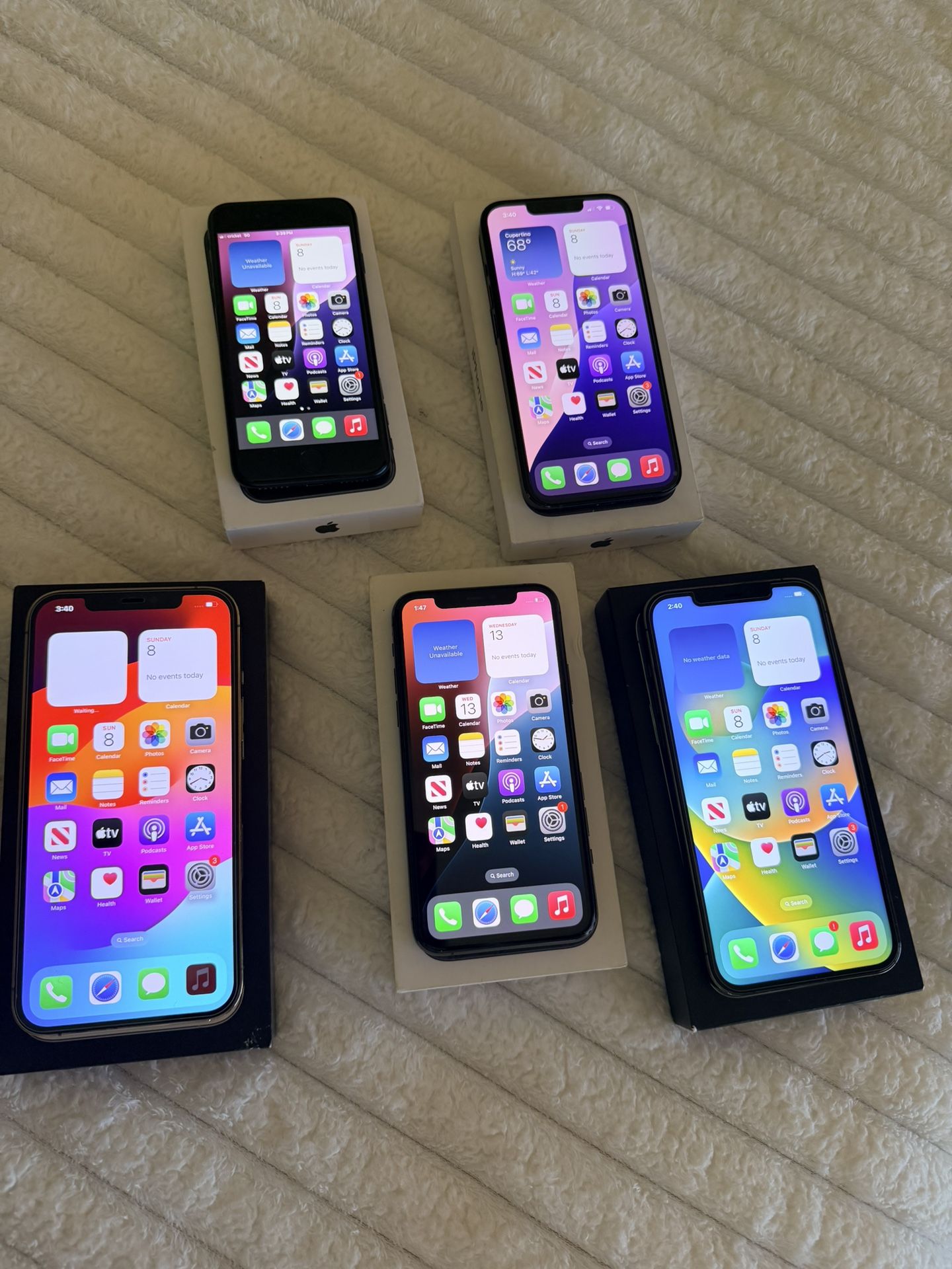 I have various iPhones for sale each in good condition. iPhone SE 3rd Gen $150 iPhone 11 Pro 256GB $250 iPhone 13 128GB $299 iPhone 12 Pro Max 128GB $299 iPhone 12 Pro Max 128GB $299 Test upon pick up
