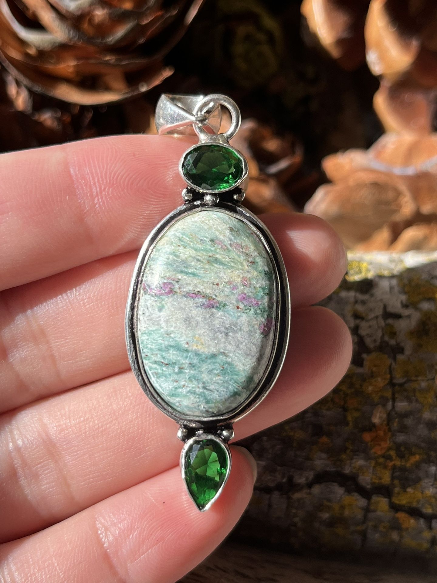 925 silver overlay ruby zoisite pendant